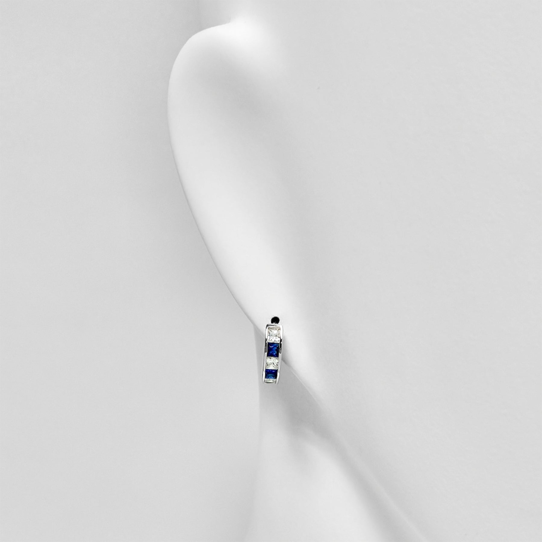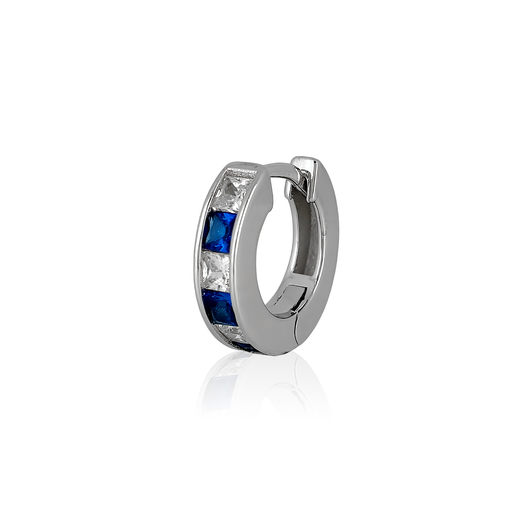 深いブルーとクリアストーンを交互に並べた、上品で端正なフープピアス。