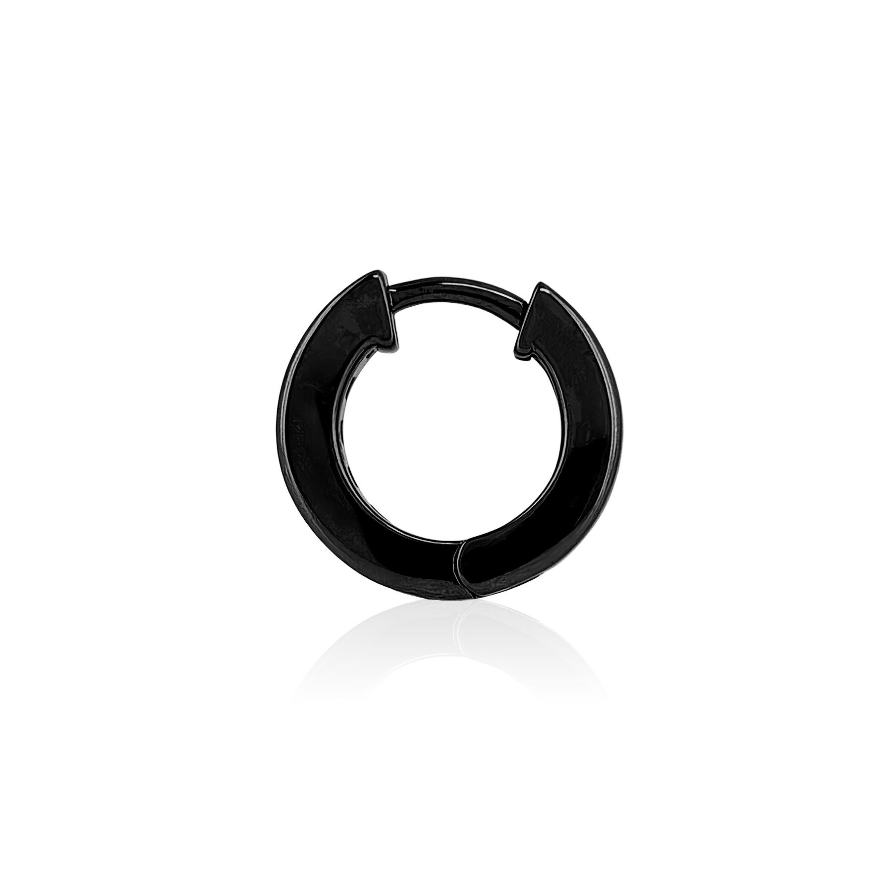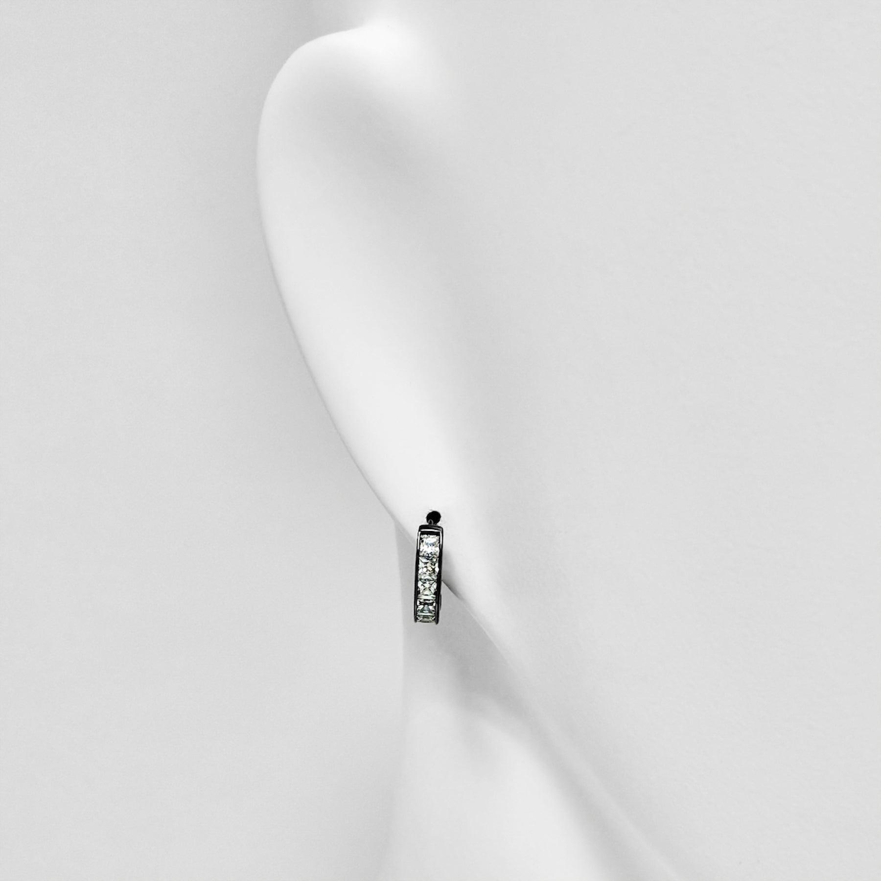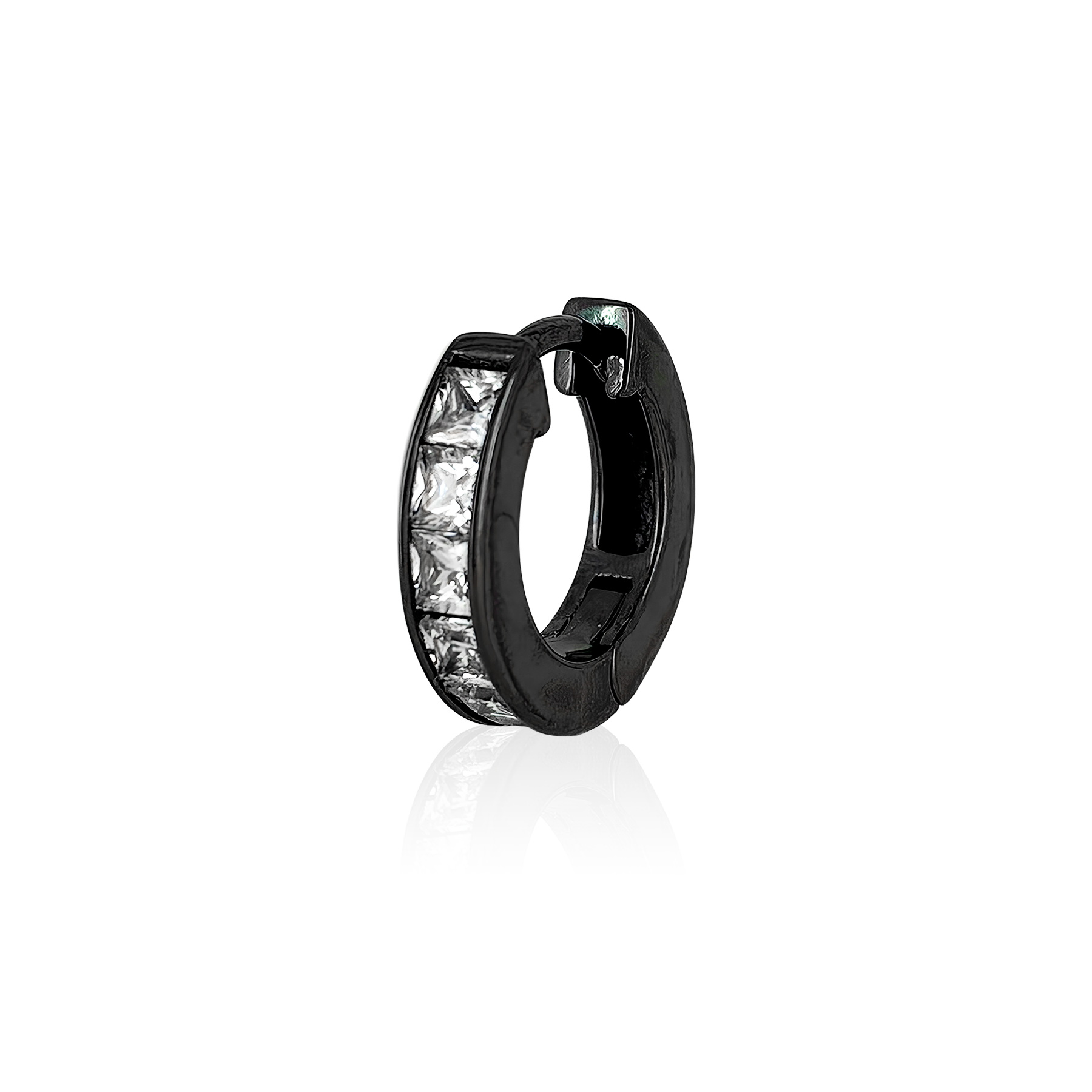 深みのあるブラックコーティングに、プリンセスカットのクリアストーンを敷き詰めたフープピアス。