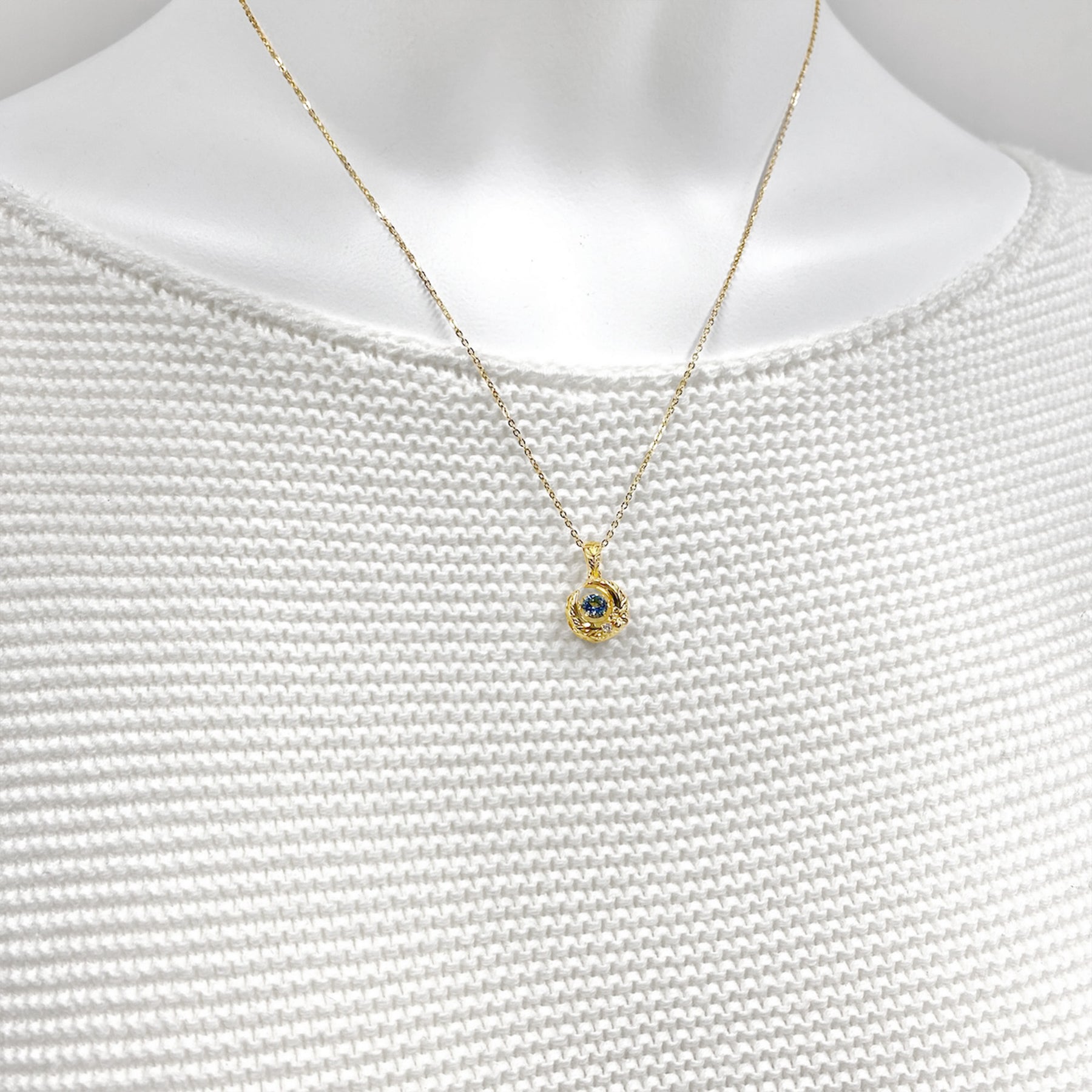 月の先端には小さなプルメリアとホワイトCZを添え、祝福と永遠の輝きをプラス。