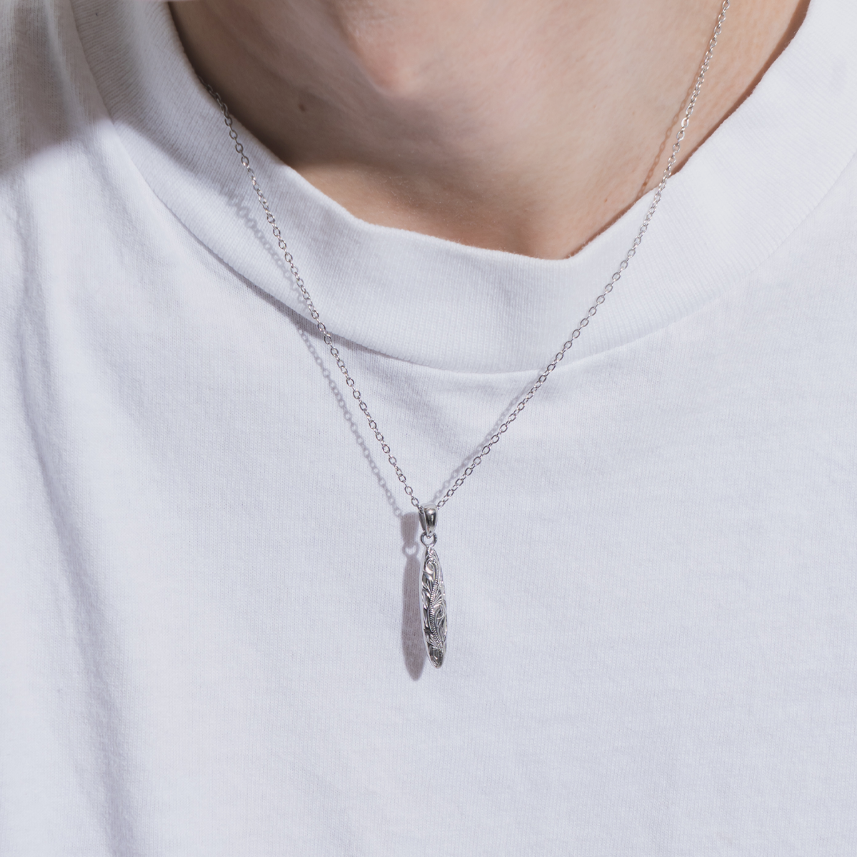 生命力と繁栄を意味するリーフ模様を丁寧に彫り込んだネックレス。
