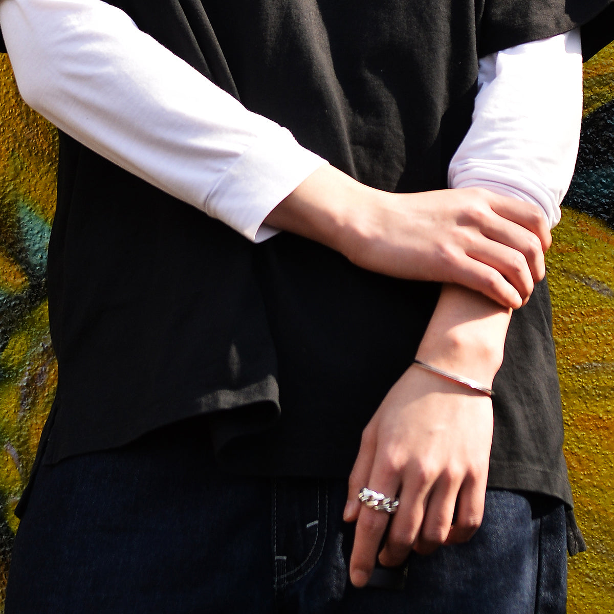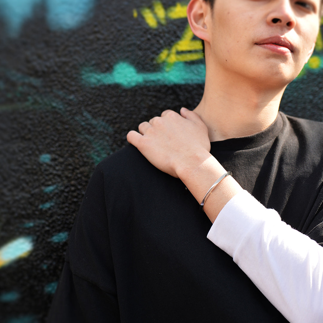 シンプルなトライアングルワイヤーバングル。1本でのスタイリングはもちろん、他のバングルやブレスレットの重ね付けで様々なアレンジができるアイテムです。