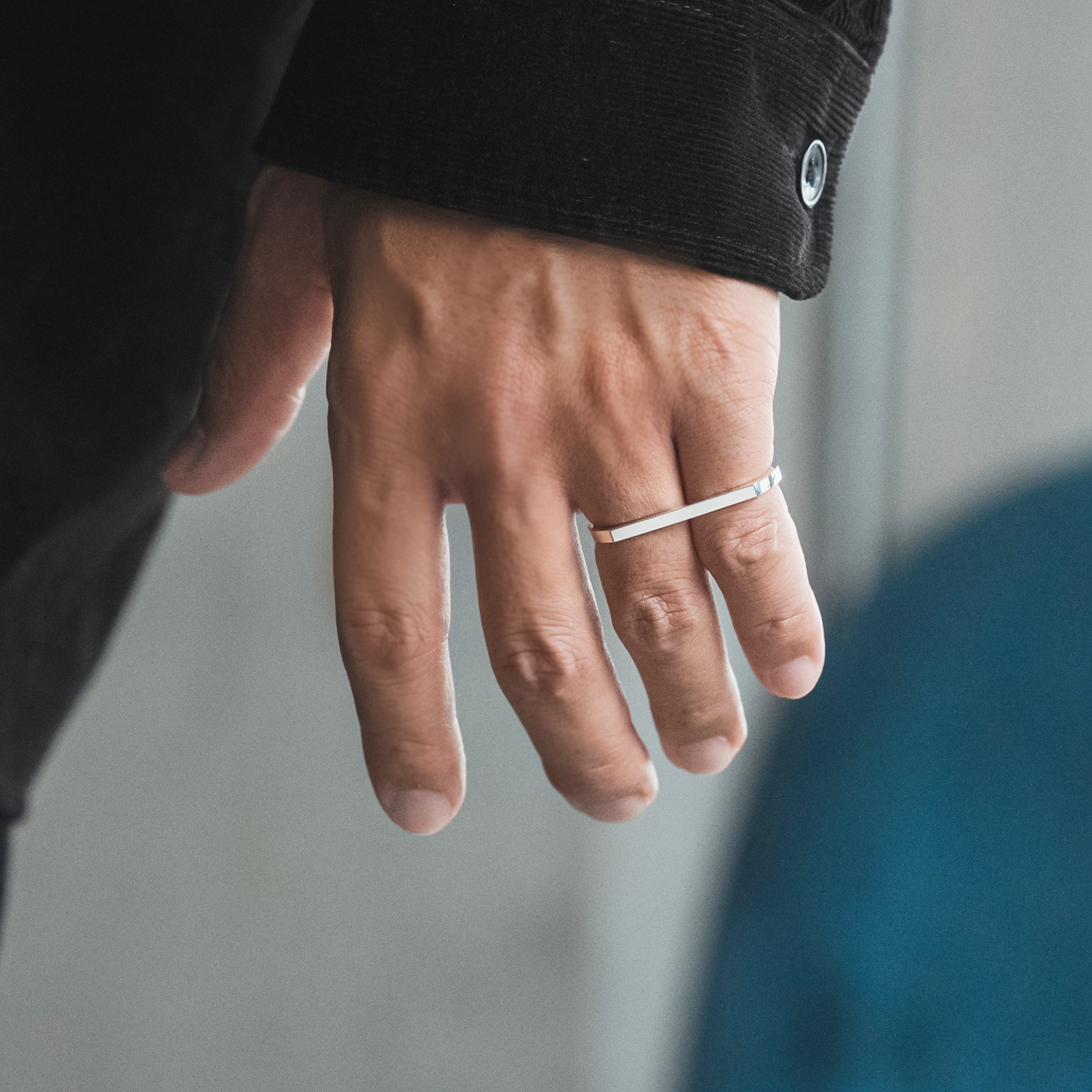 2本の指を通すダブルリング。人差し指と、中指。また中指と薬指等に使用します。単体のスタイリングはもちろん。他の指輪と重ね付けでスタイリングの幅が広げられるアイテムです、フリーリングなので、指へのストレスが少ないのも特徴です。