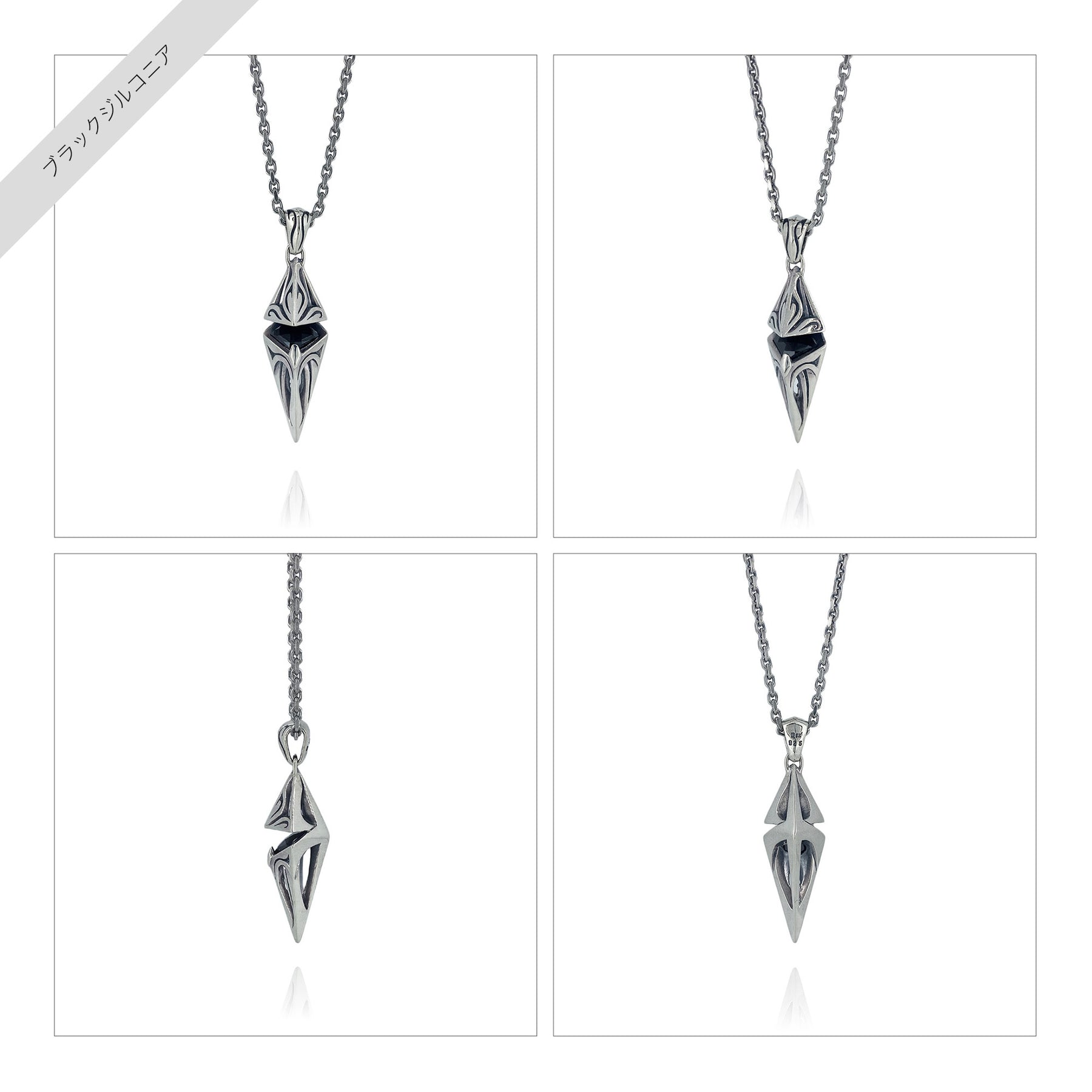 尖鋭的なシルエットに、艶やかなカットストーンを“ひと筋の光”としてあしらったスピアーモチーフネックレス。