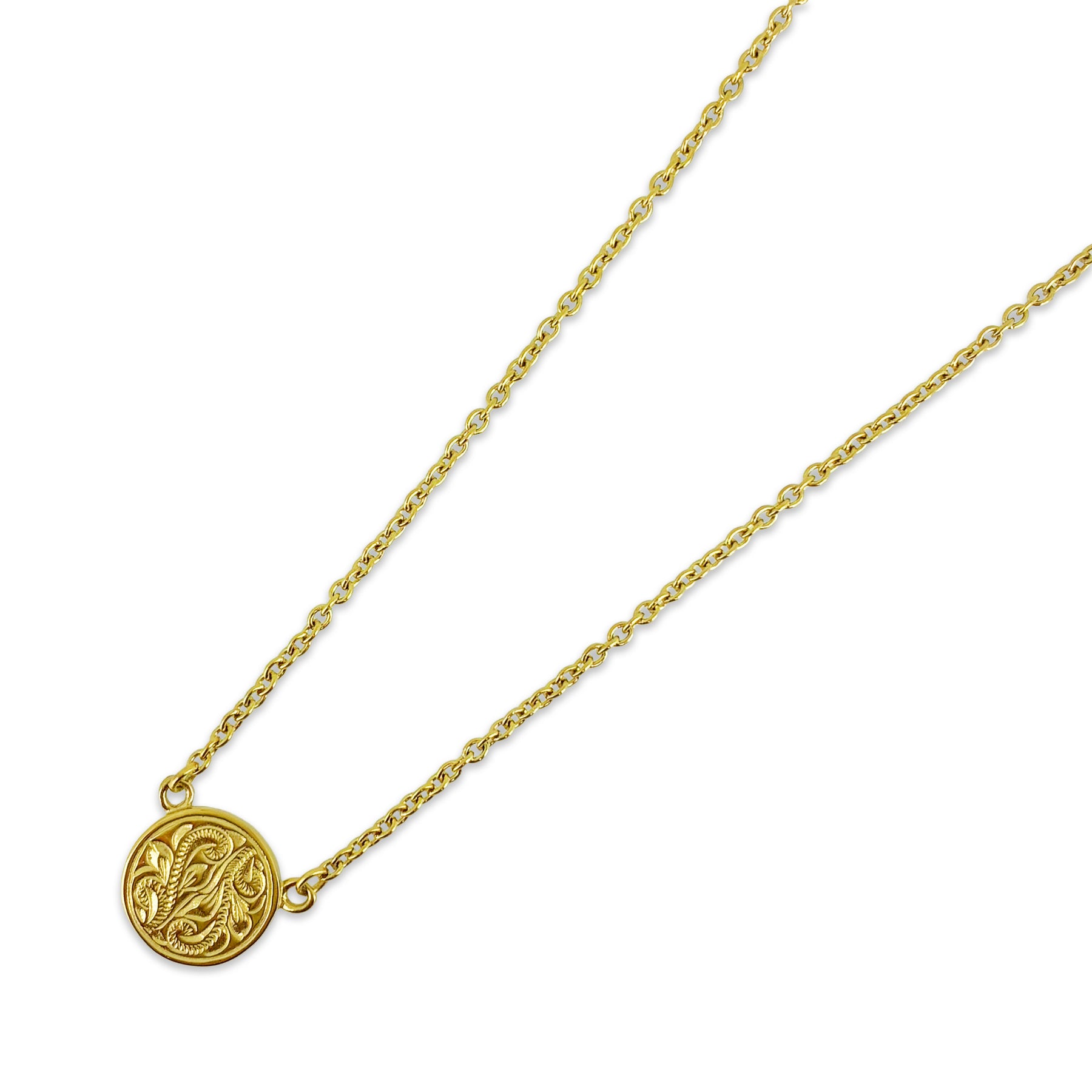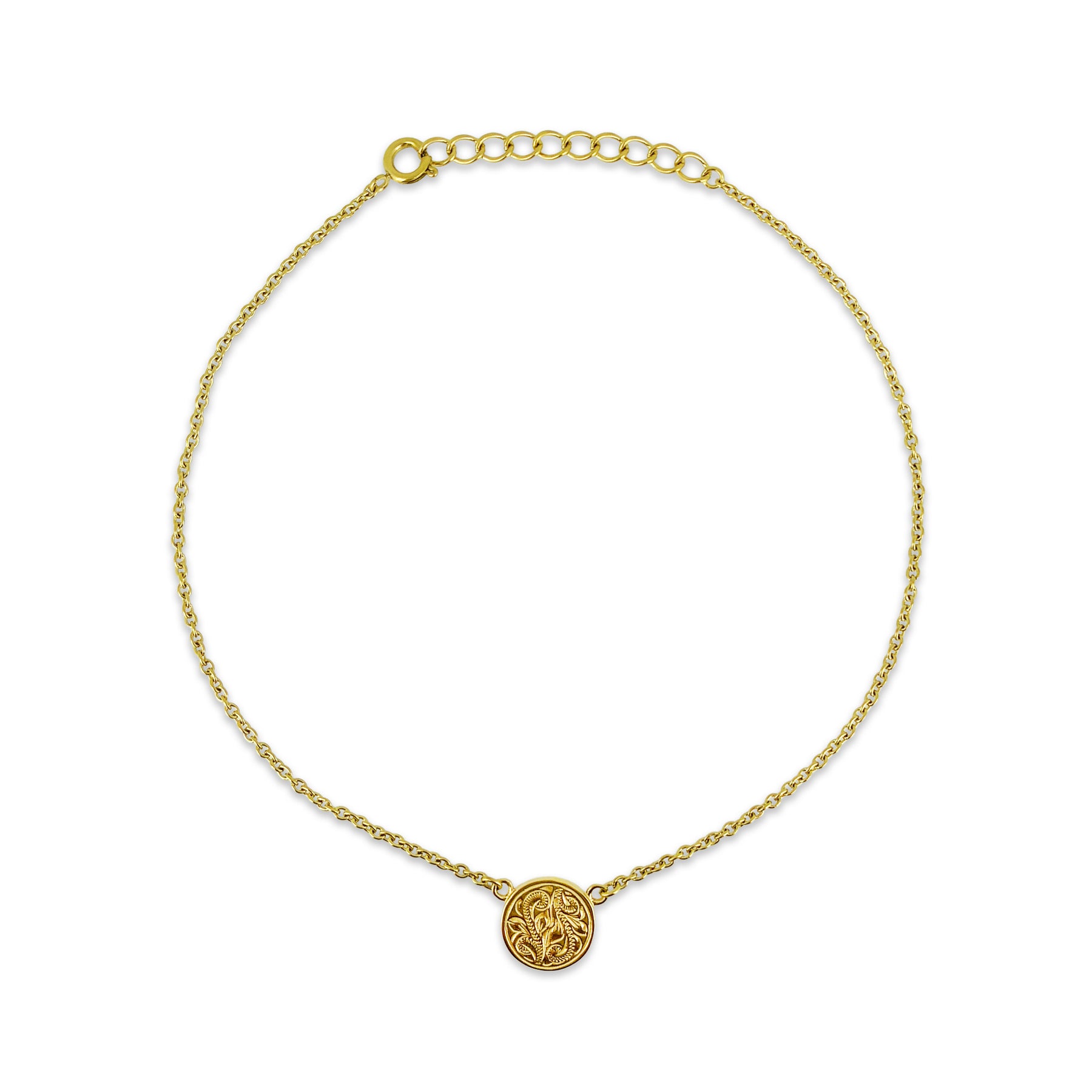 繊細なチェーンに、ハワイアン彫りを施したコインモチーフを添えたアンクレット。