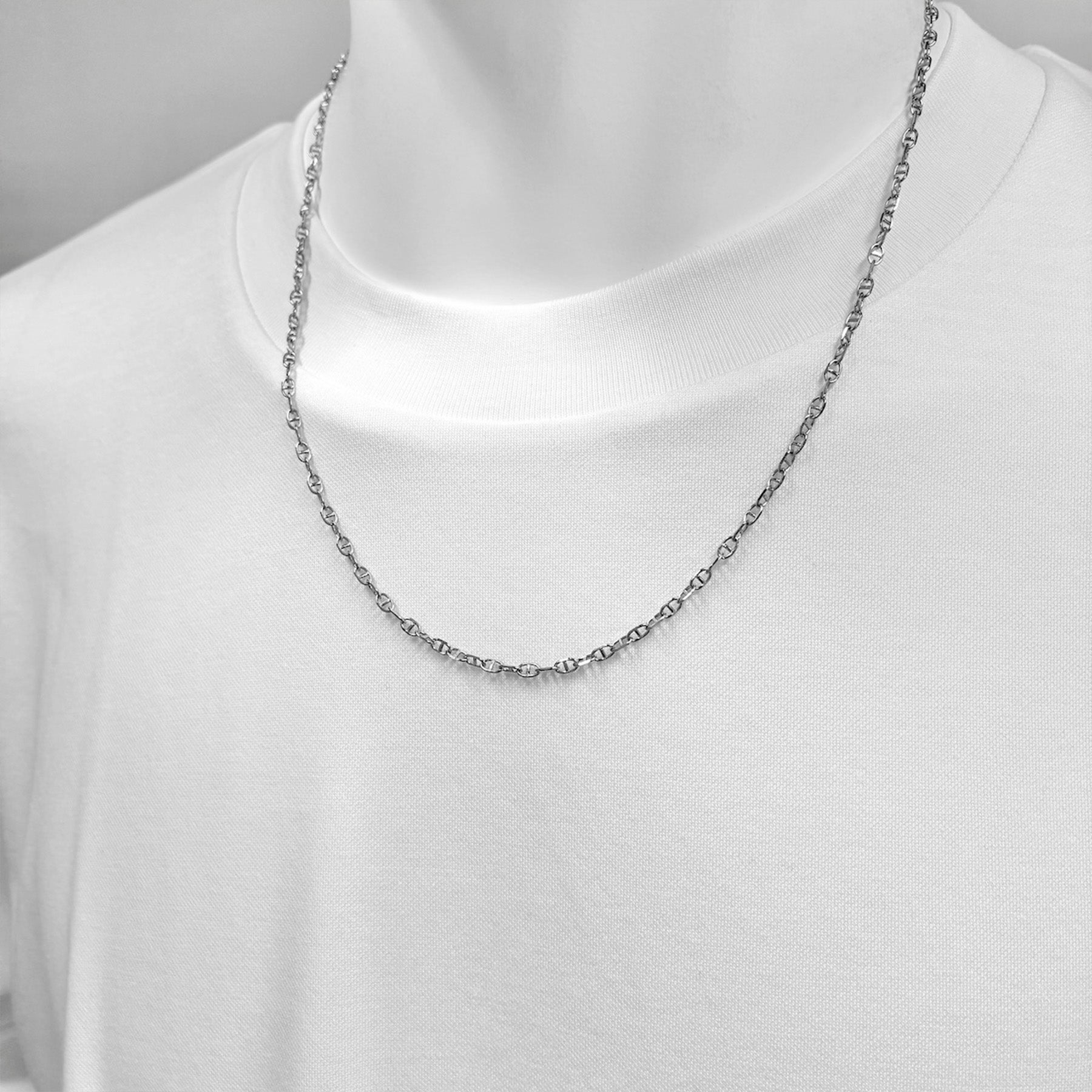 カジュアルにもフォーマルにも馴染む万能デザインで、首元にさりげない存在感をプラス。ユニセックスに楽しめる、シンプルかつ洗練されたチェーンネックレスです。。