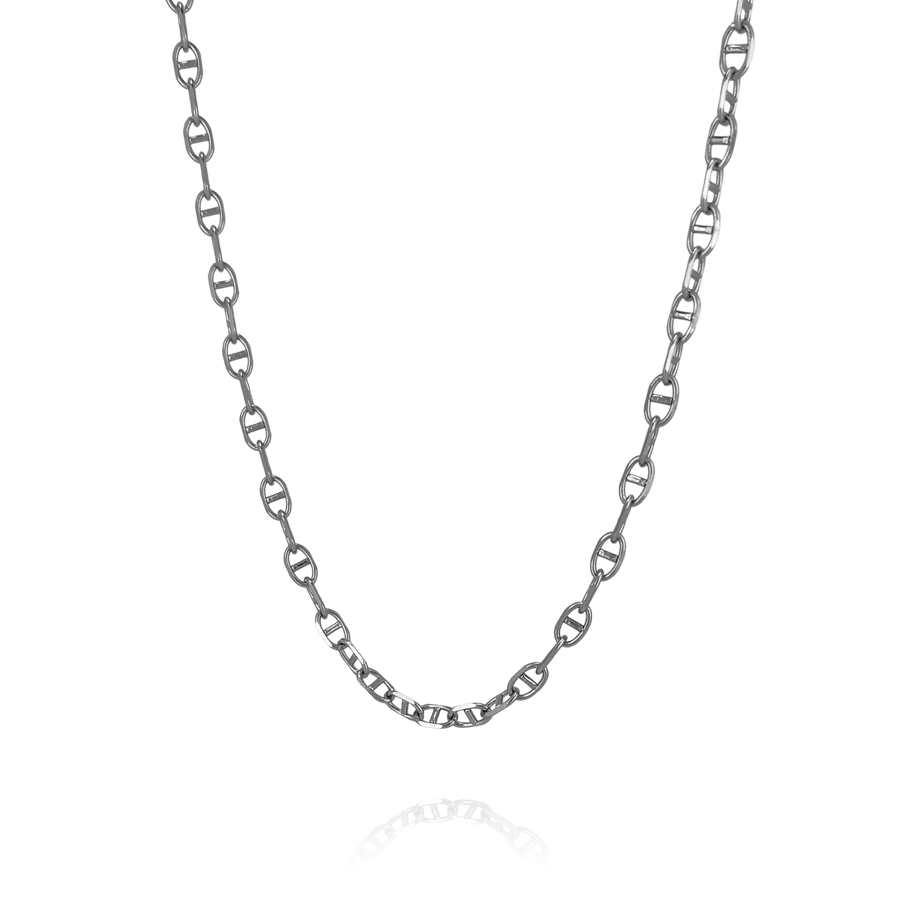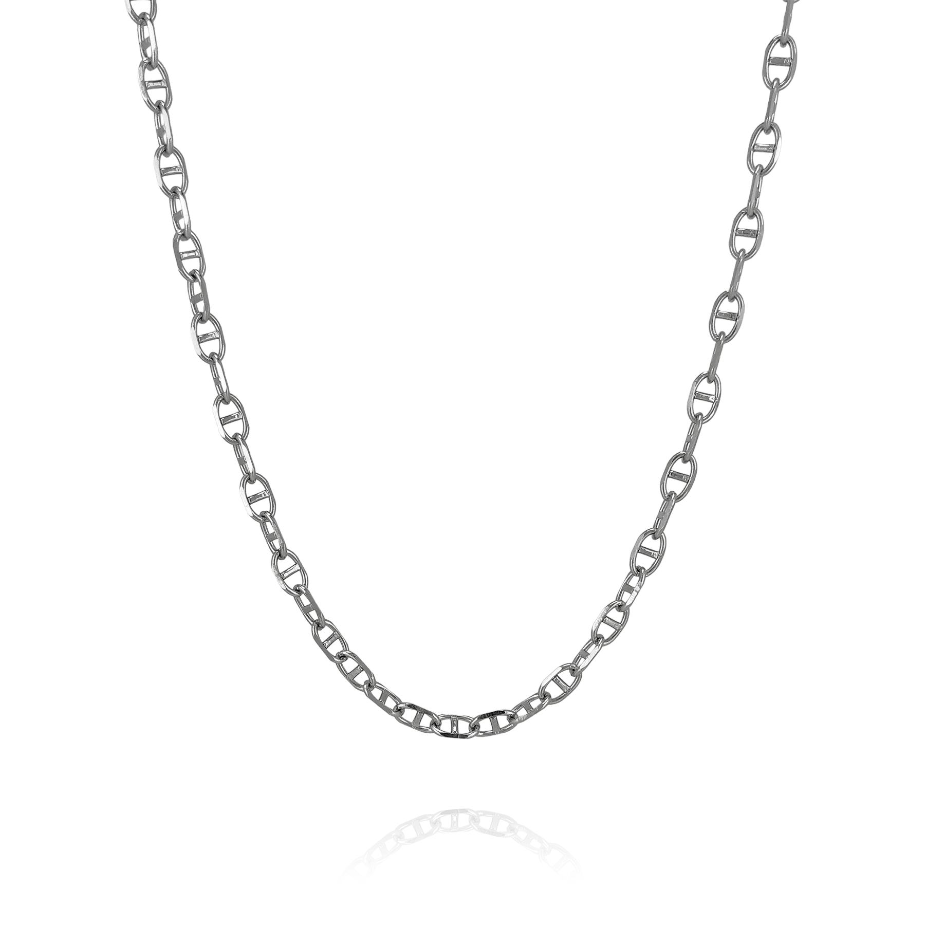 細やかなカッティングが光を反射し、動くたびに上品な輝きを放つアンカーチェーン。