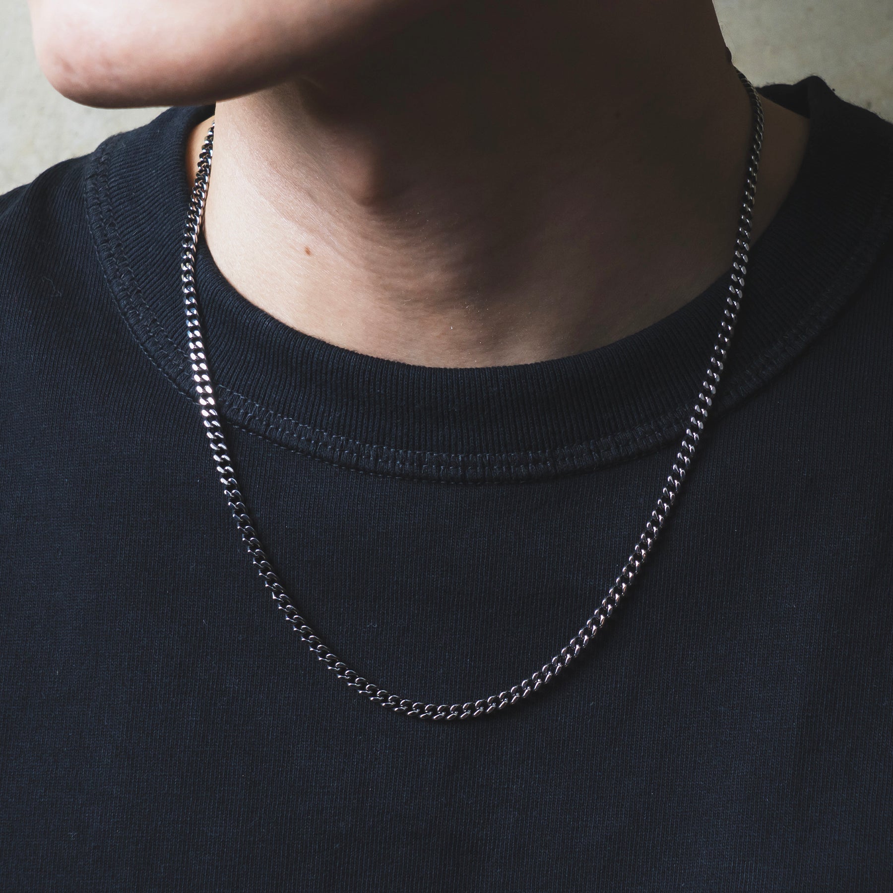 深みのある“燻しシルバー”のような表情が魅力の、ヴィンテージ仕様キューバチェーンネックレス。