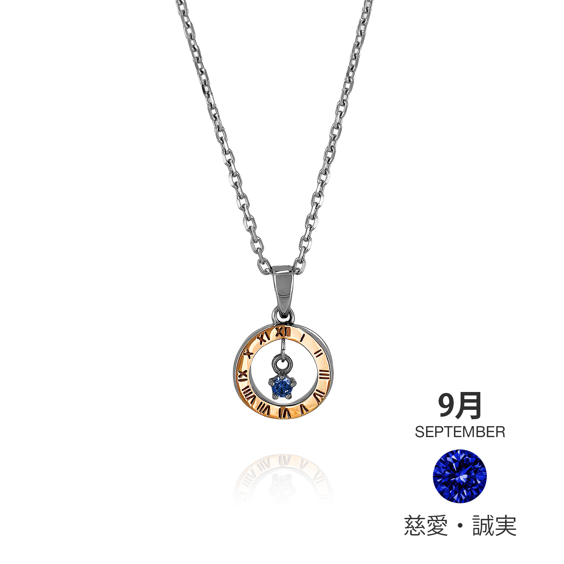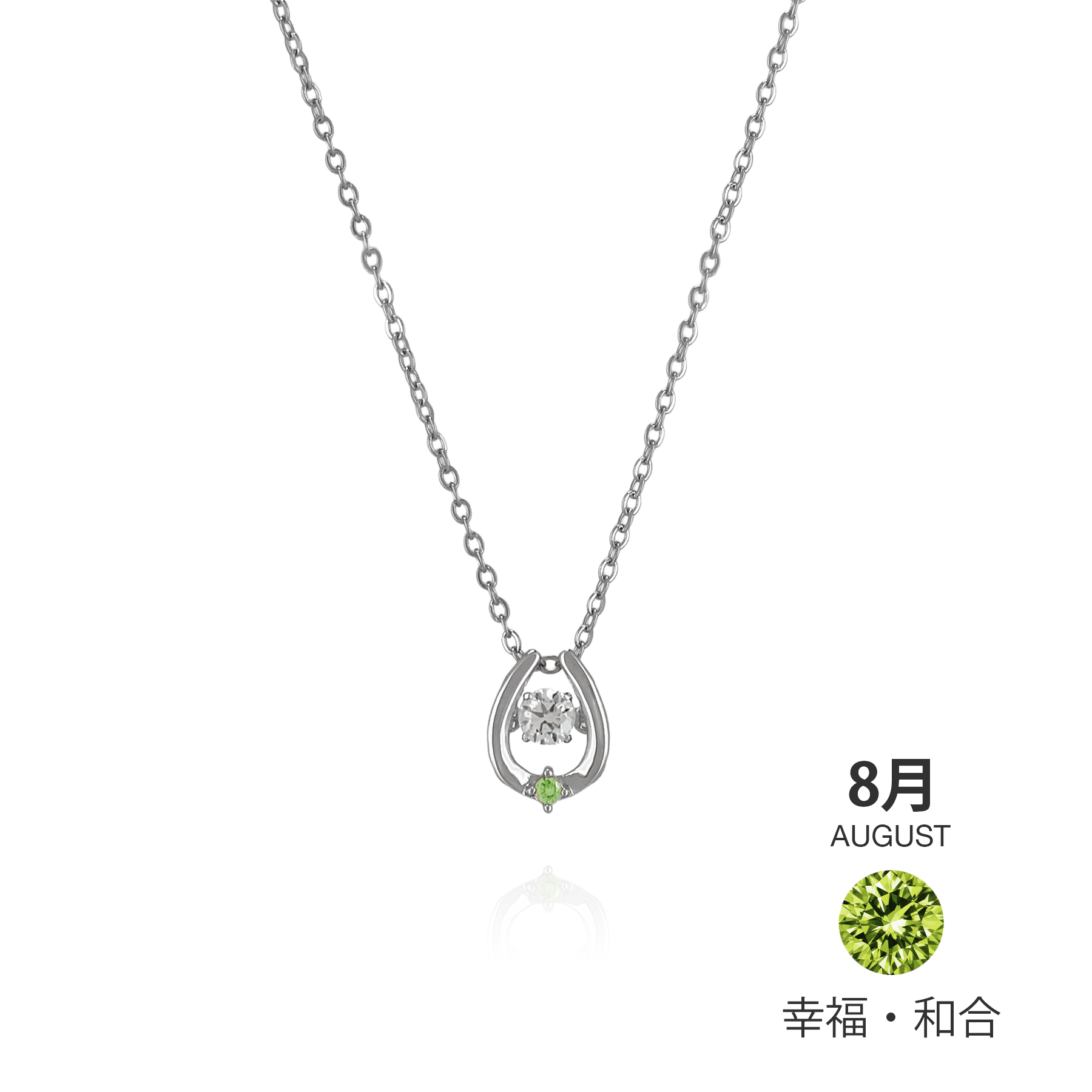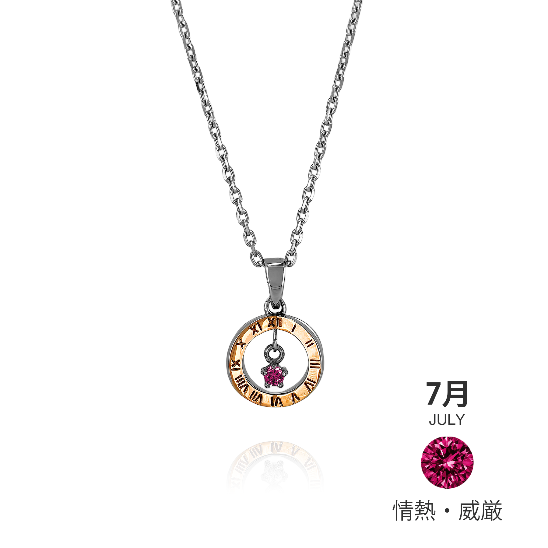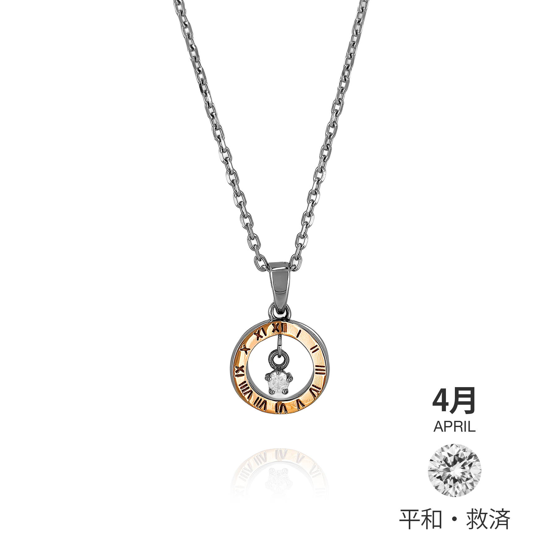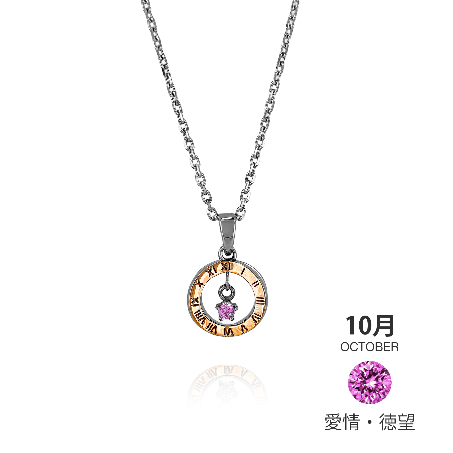 時間を刻むローマン数字と、胸元で揺れる誕生石。
