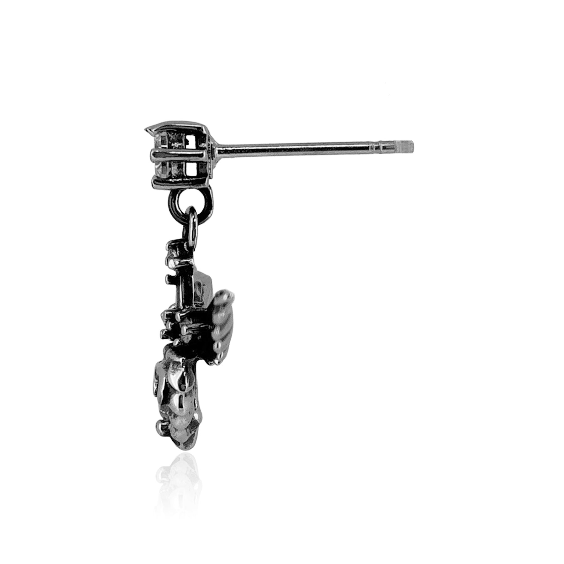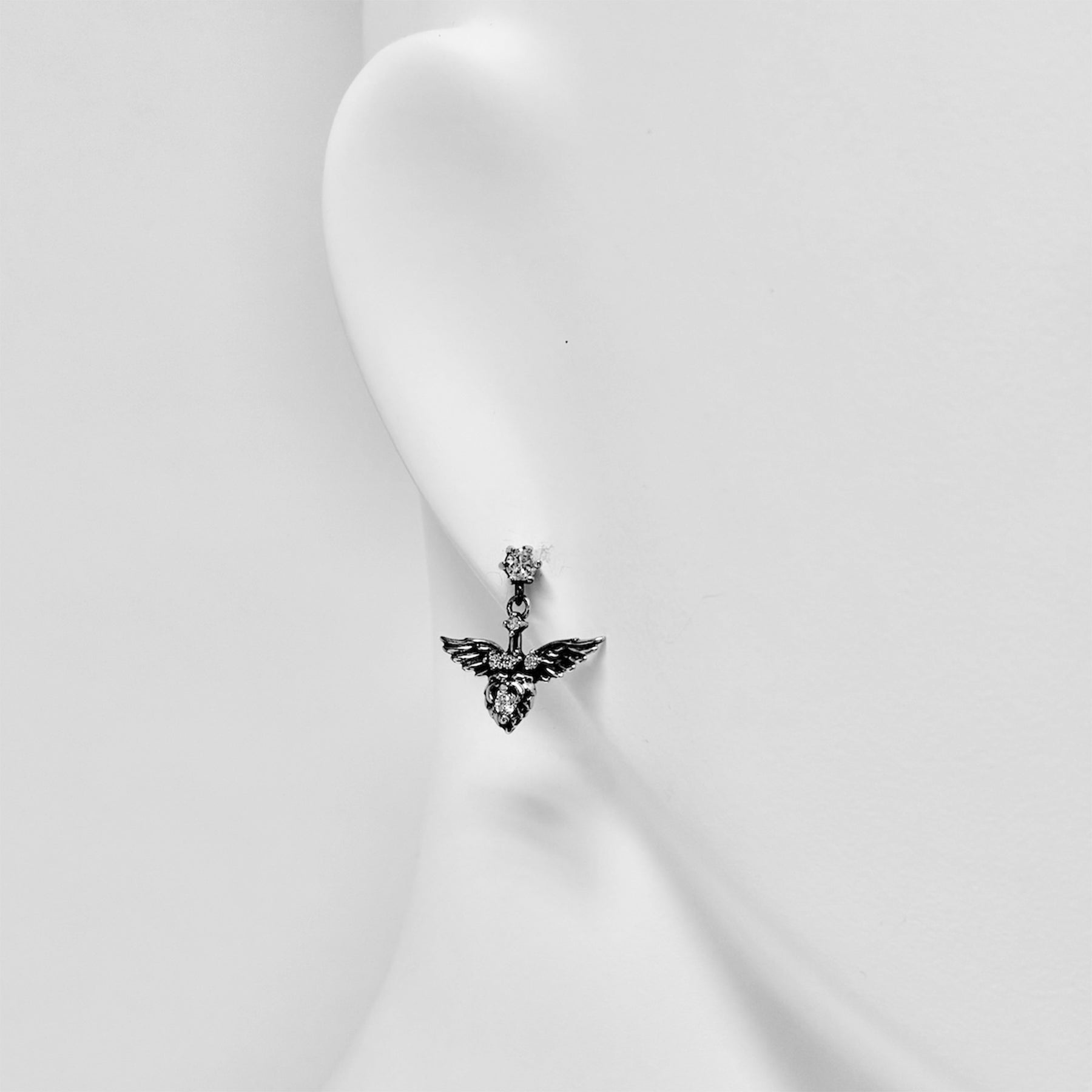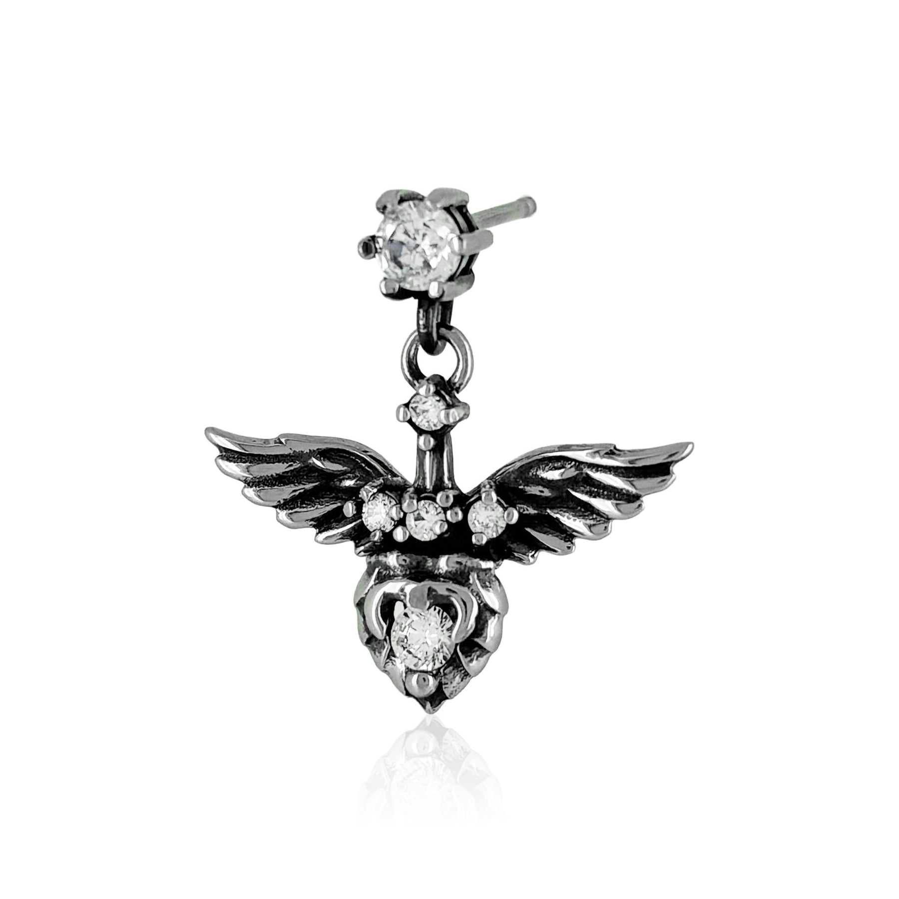 トップは一粒ストーンのスタッド、下には翼を広げたウィングモチーフを揺らしたドロップピアス。