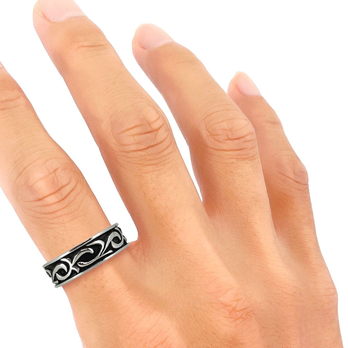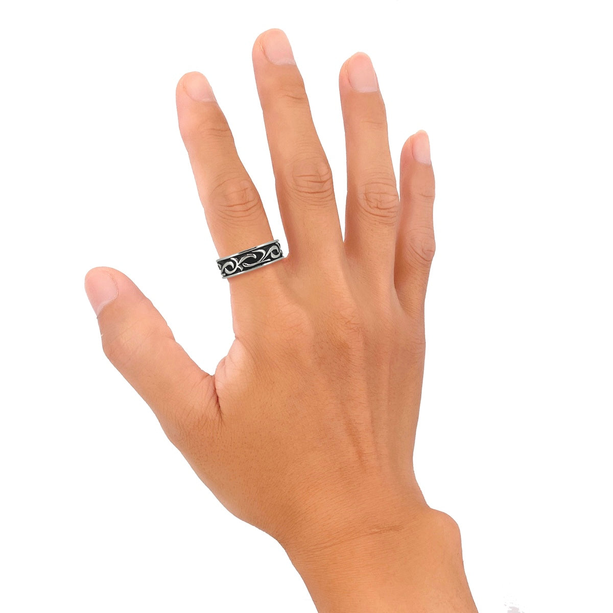 流れるような曲線が印象的なトライバル模様を、モダンに昇華したリング。