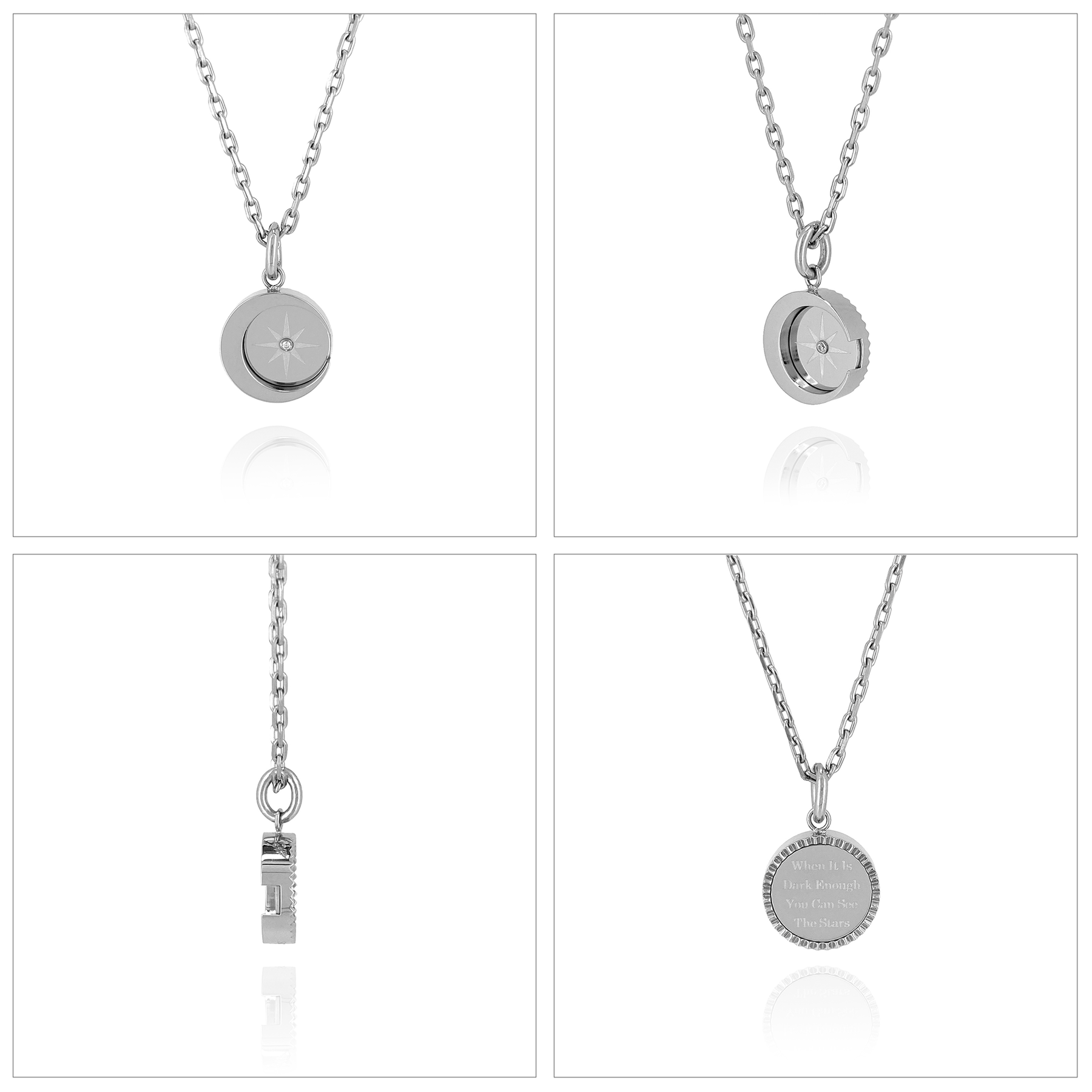 2つ合わせると、煌めくダンシングストーンがメンズネックレスの星に重なり、大きく輝きを増した星が現れます。