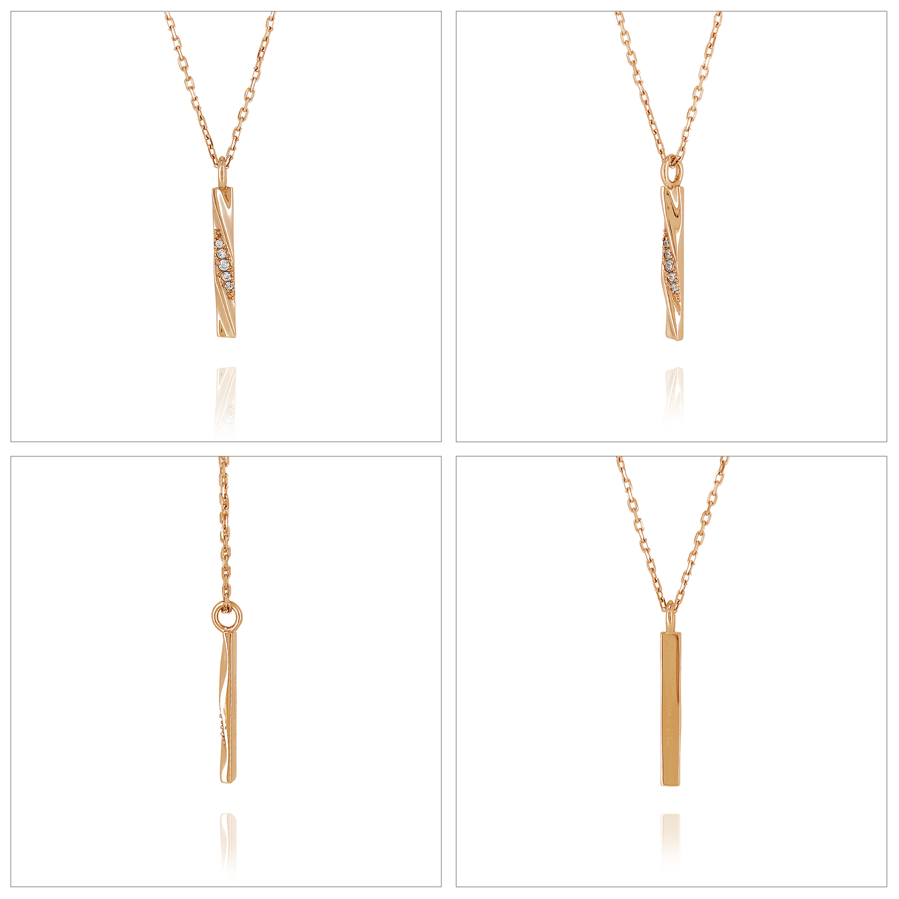 ツイストさせることにより金属の光沢感、ツヤ感を最大限に引き出しデコルテを美しく魅せてくれます。