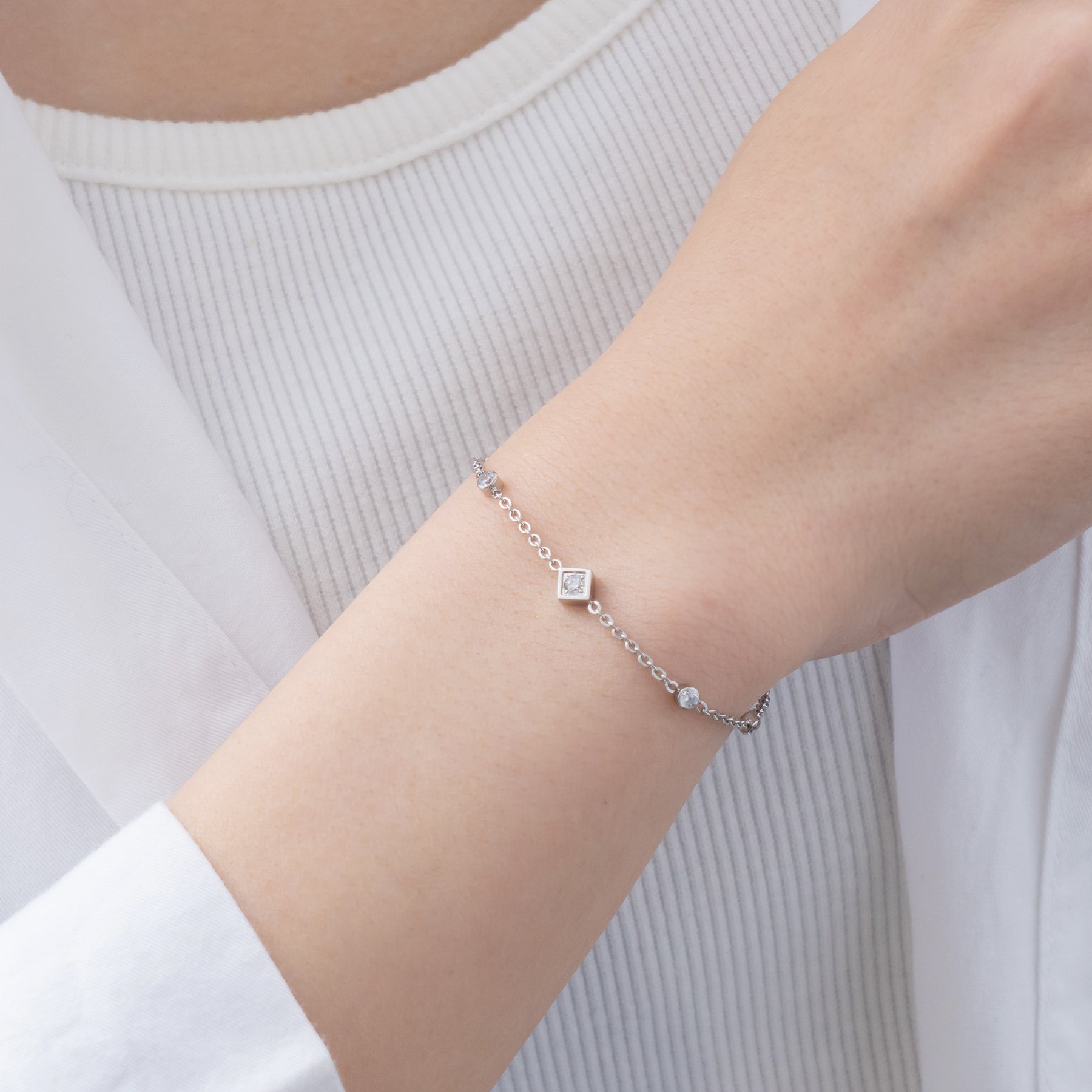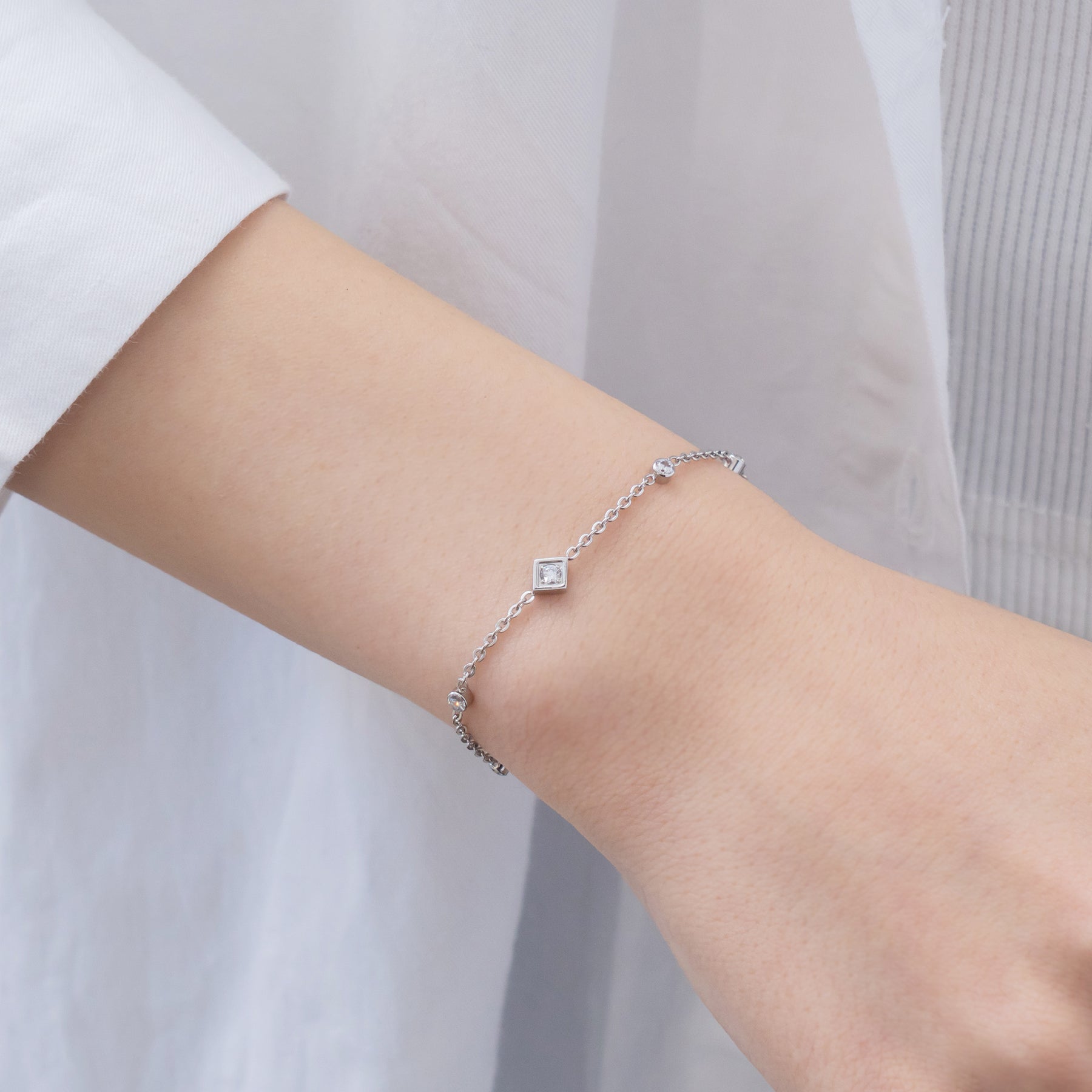 ダイヤ形モチーフに一粒のホワイトジルコニアが輝く。