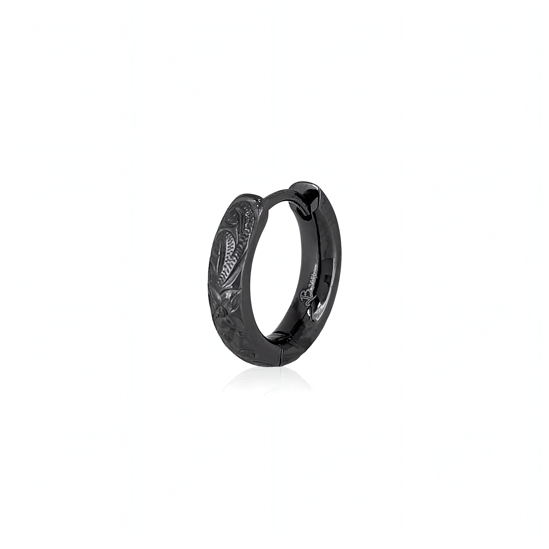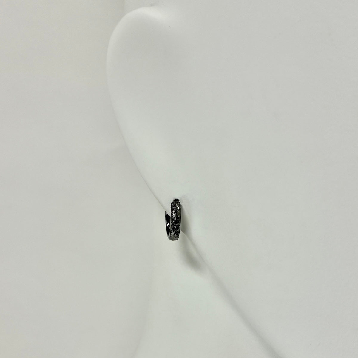 耳元で静かに主張する、彫金が映えるフープピアス。