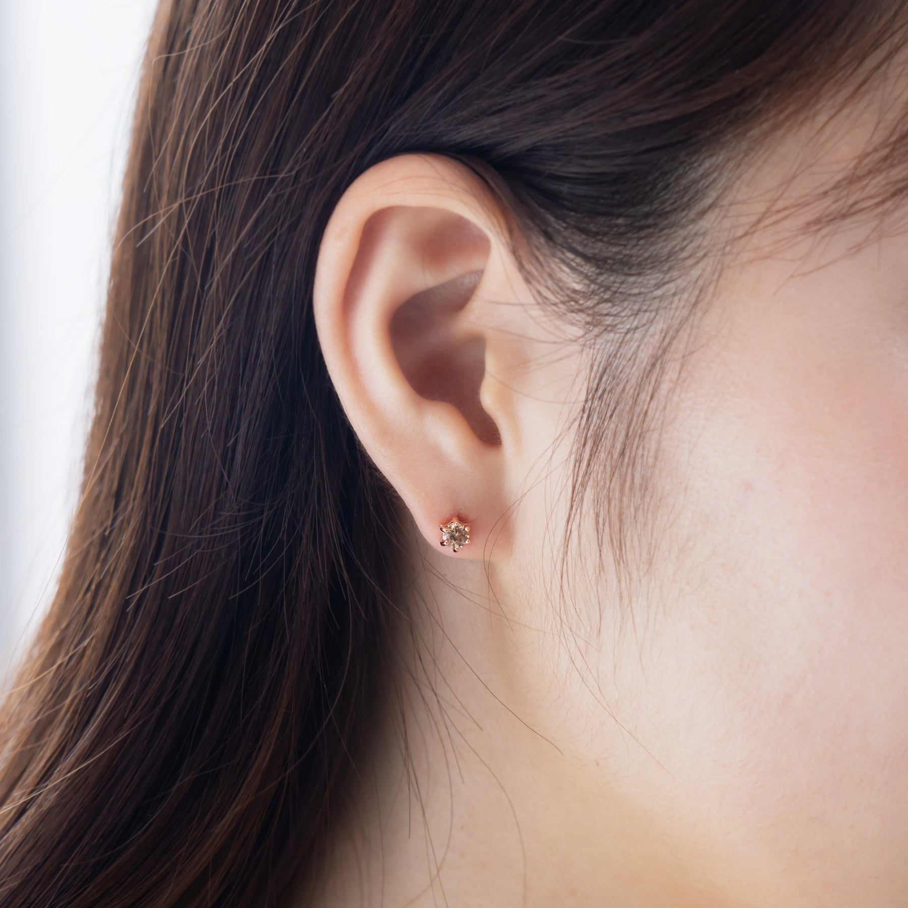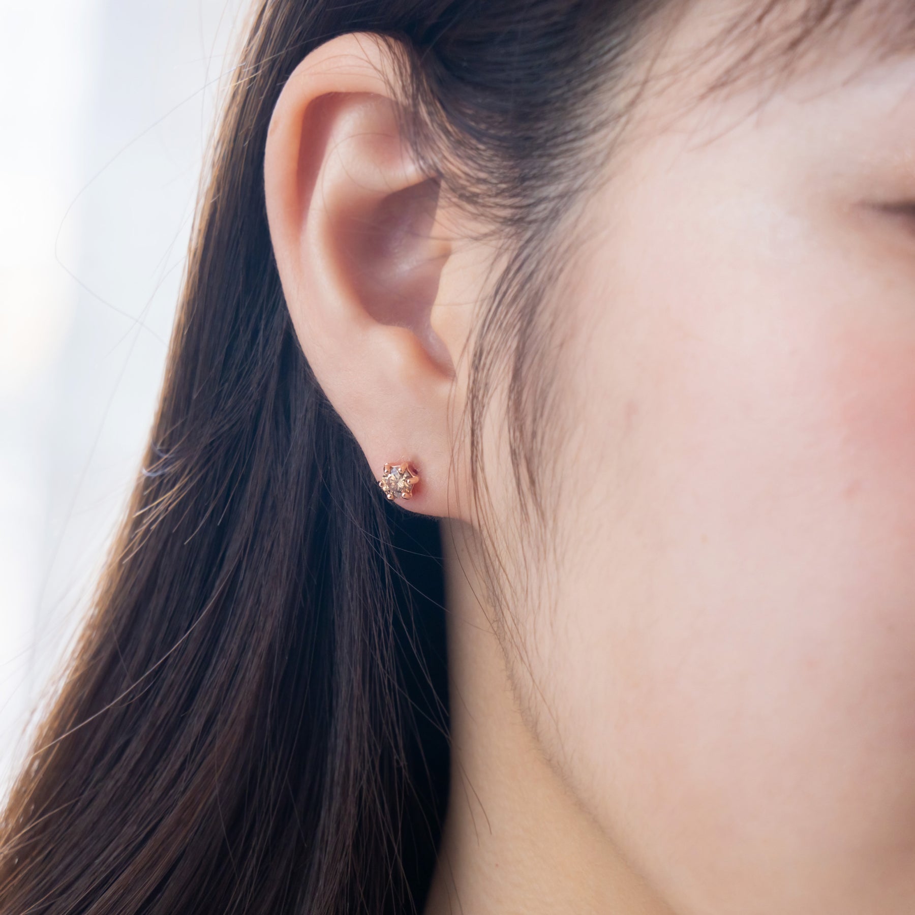 シャンパンカラーのストーンが優しく煌めく、ピンクゴールド仕上げのスタッドピアス。
