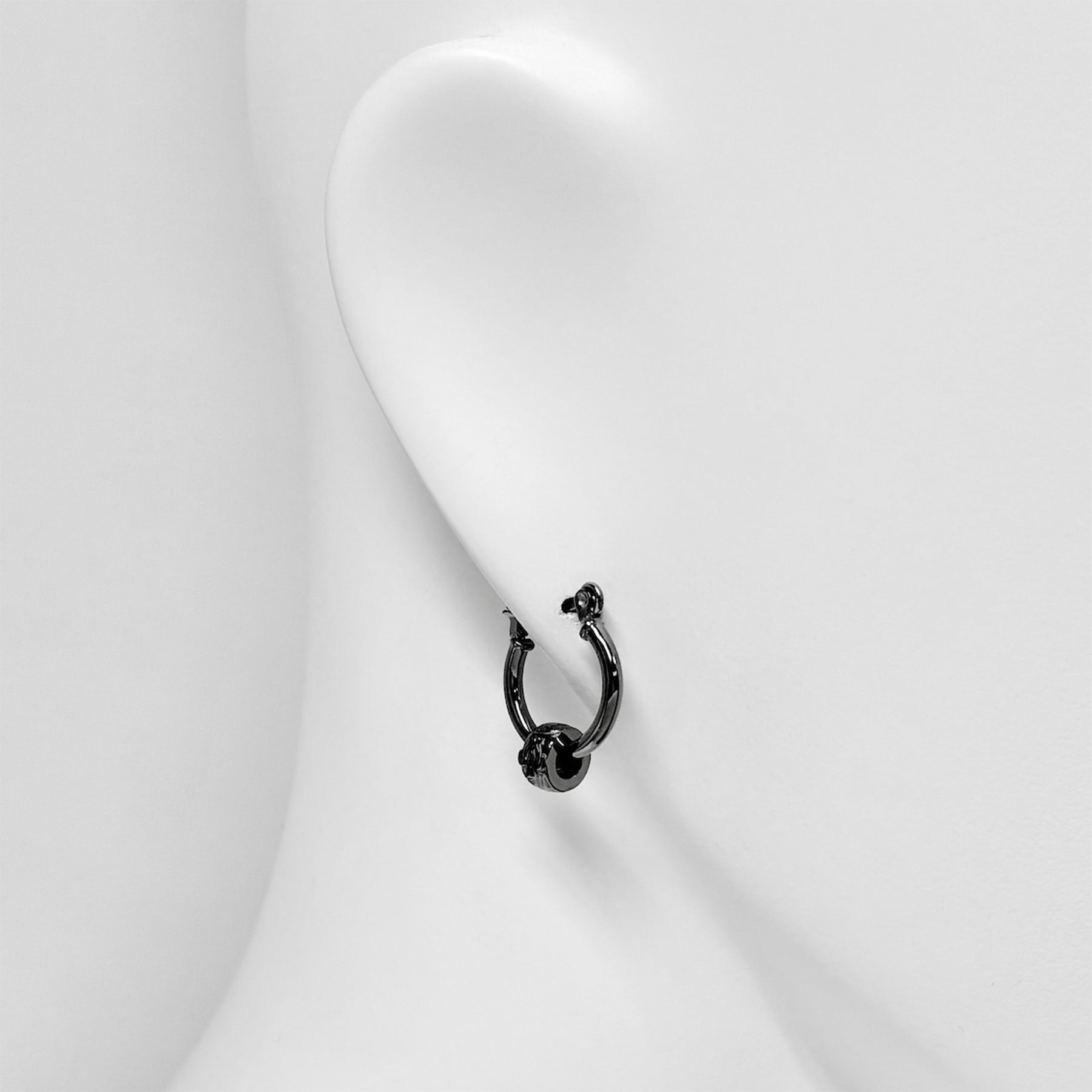 艶やかなブラックカラーが印象的な、洗練されたミニマルフープピアス。