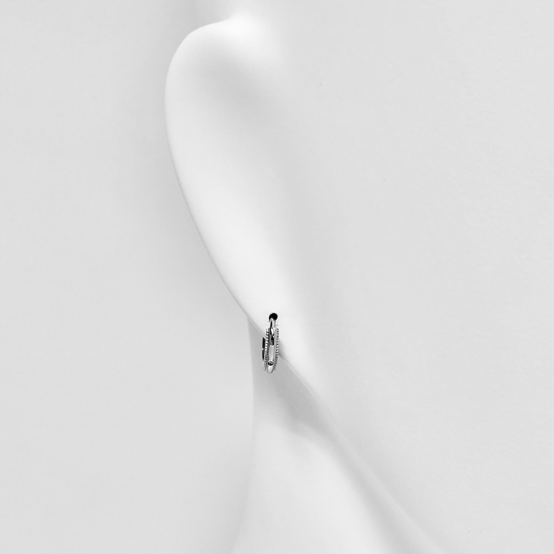 繊細なミル打ちラインと、フロントに施したワンポイントストーンが上品に輝くフープピアス。