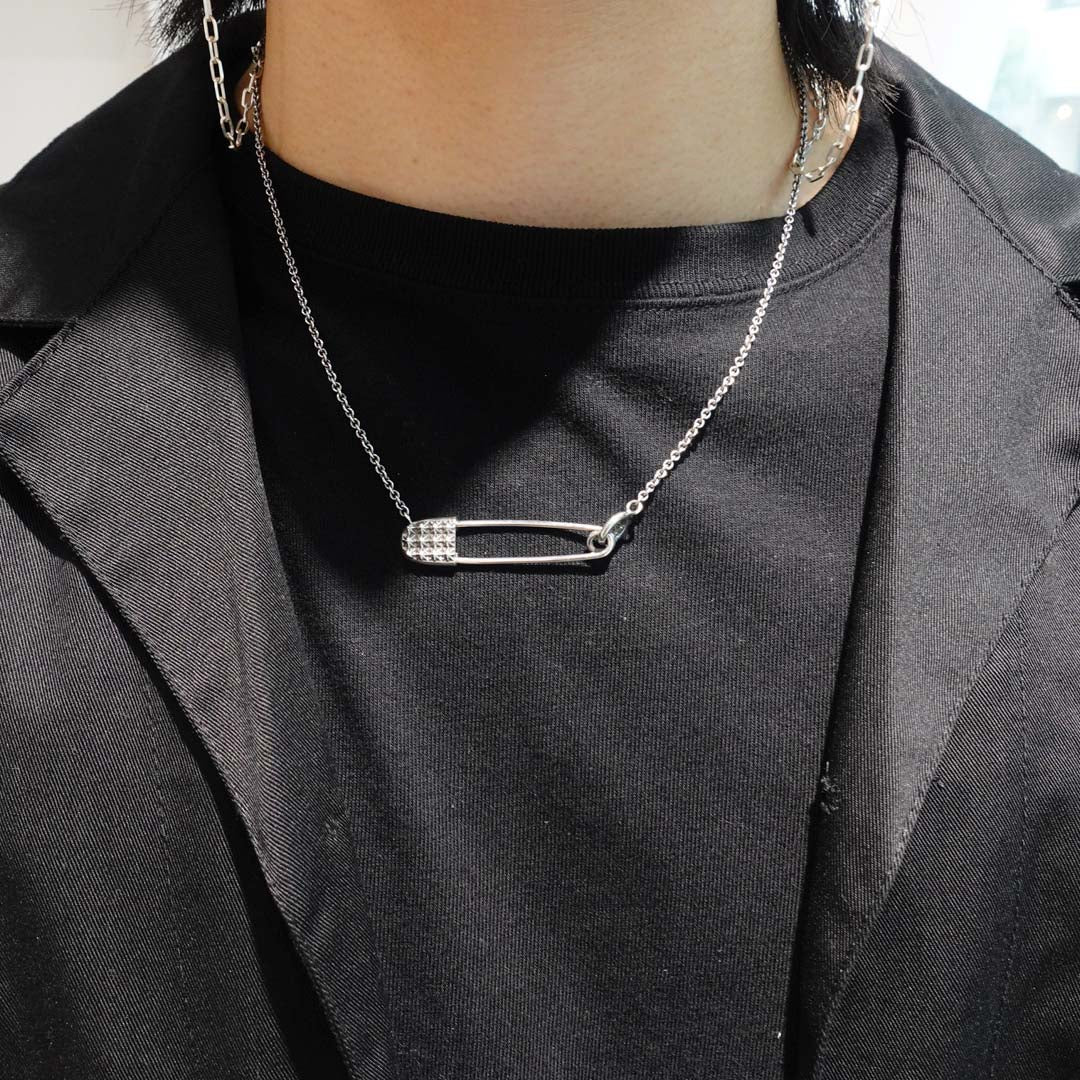 TRIPLE X STUDS SAFETY PIN NECKLACE / XP-185
