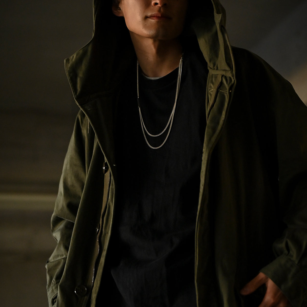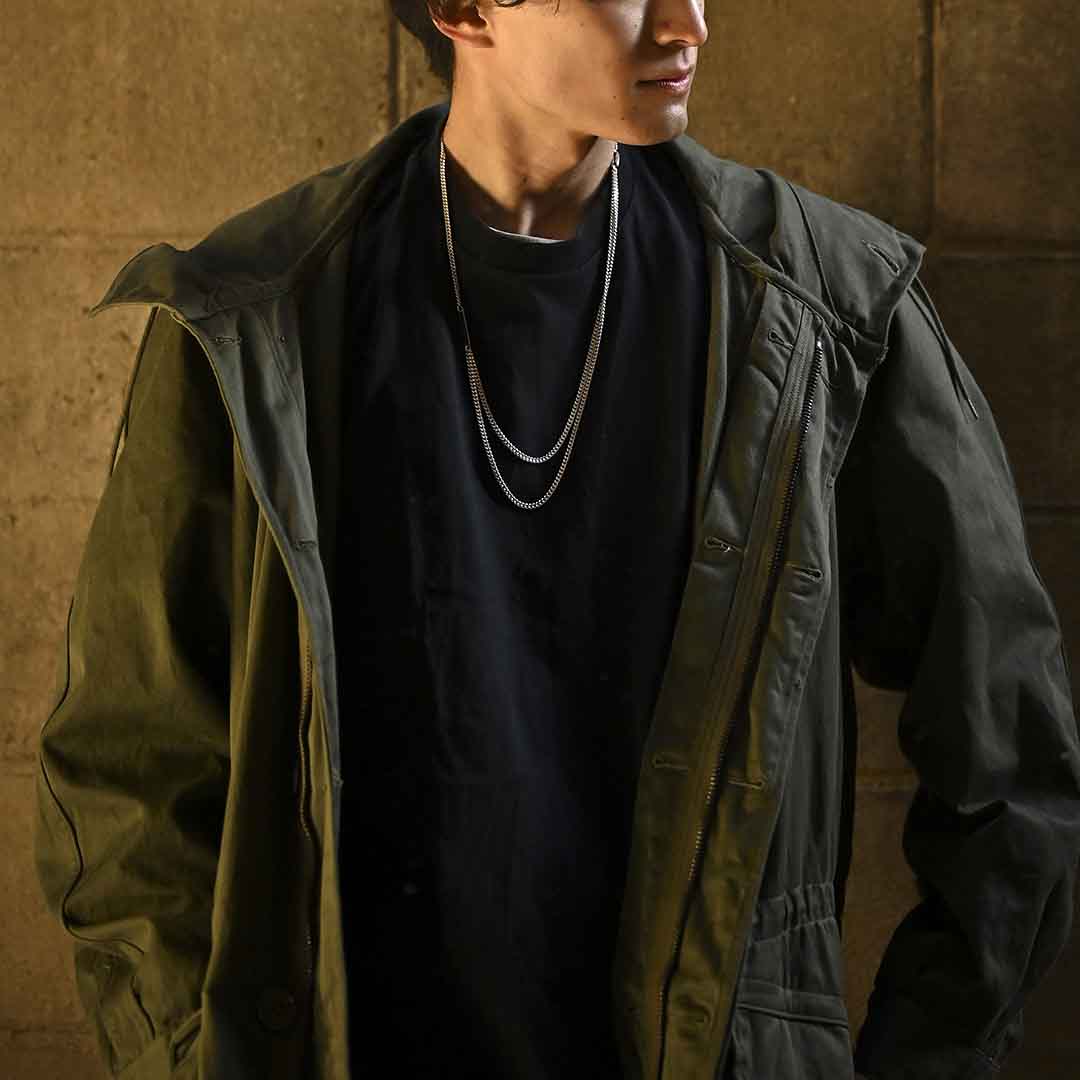 1本で重ね付けをしているかのような見え方をするレイヤードチェーンネックレス。