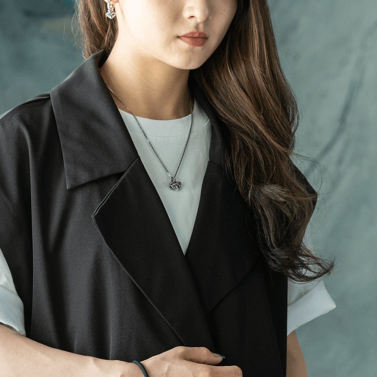 ハートに茨が巻き付くエムズコレクションらしいソーンシリーズのブランブルハートペンダントM。※茨部がゴールド(K10YG)タイプ