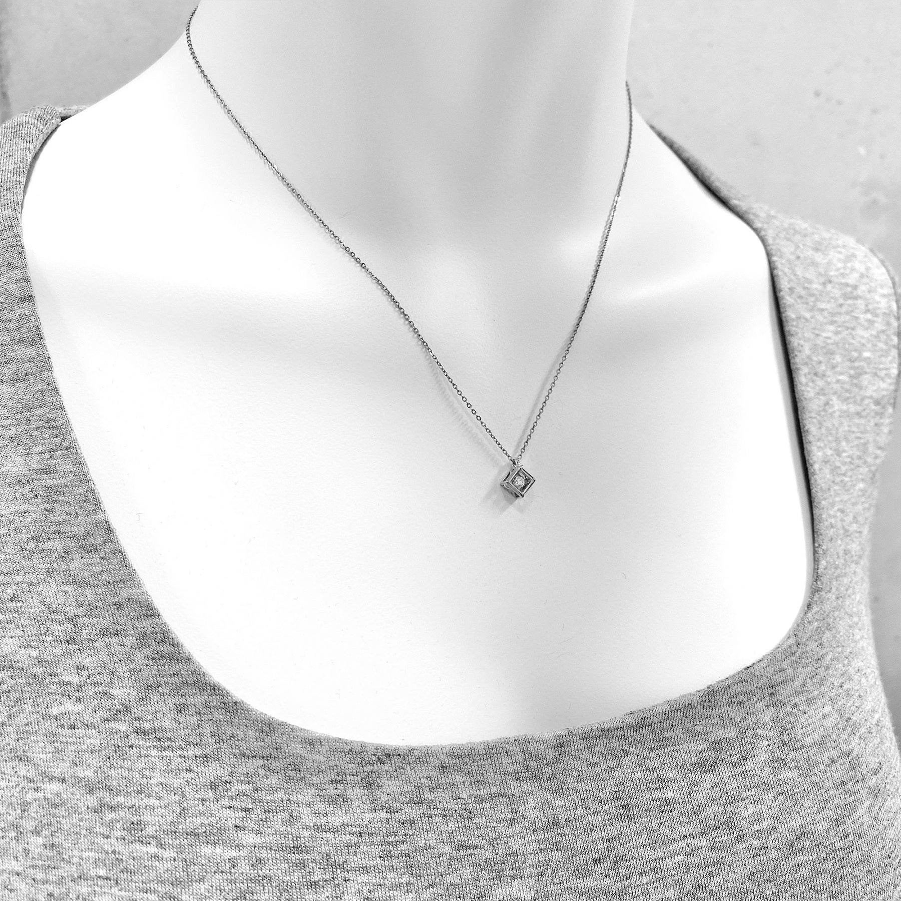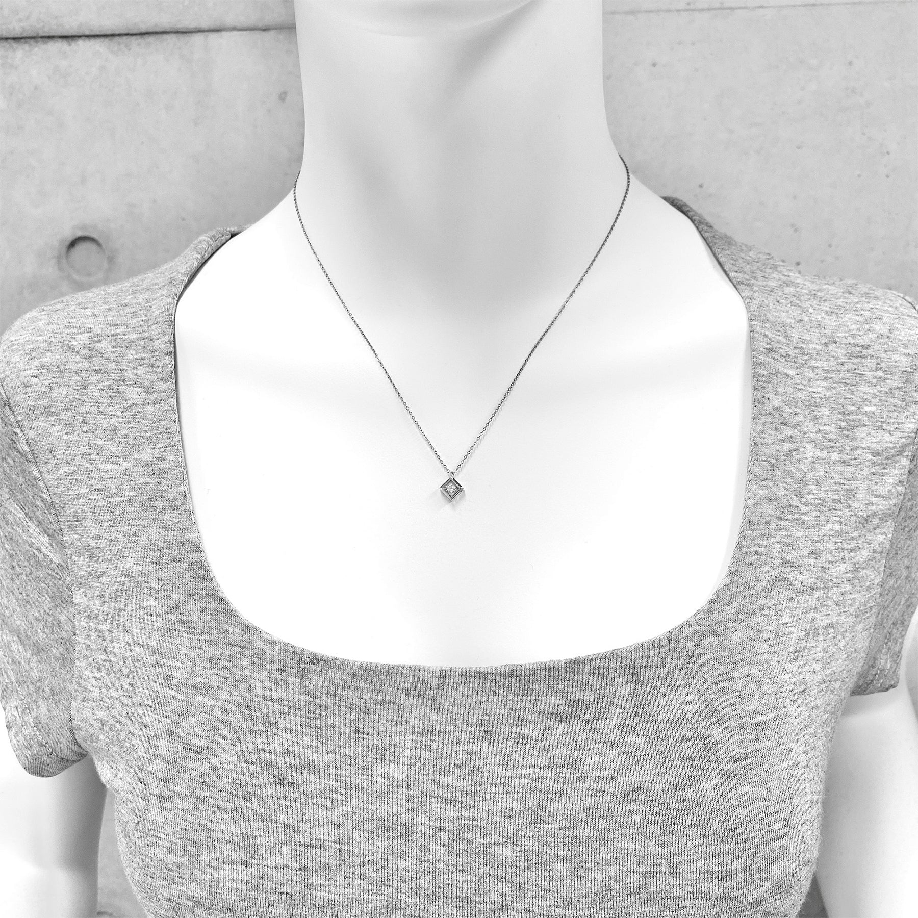 エッジの効いたスクエアフレームの中にダンシングストーンをセットしており、甘くないクールなジュエリー感のあるハイエンドな印象のネックレスです。