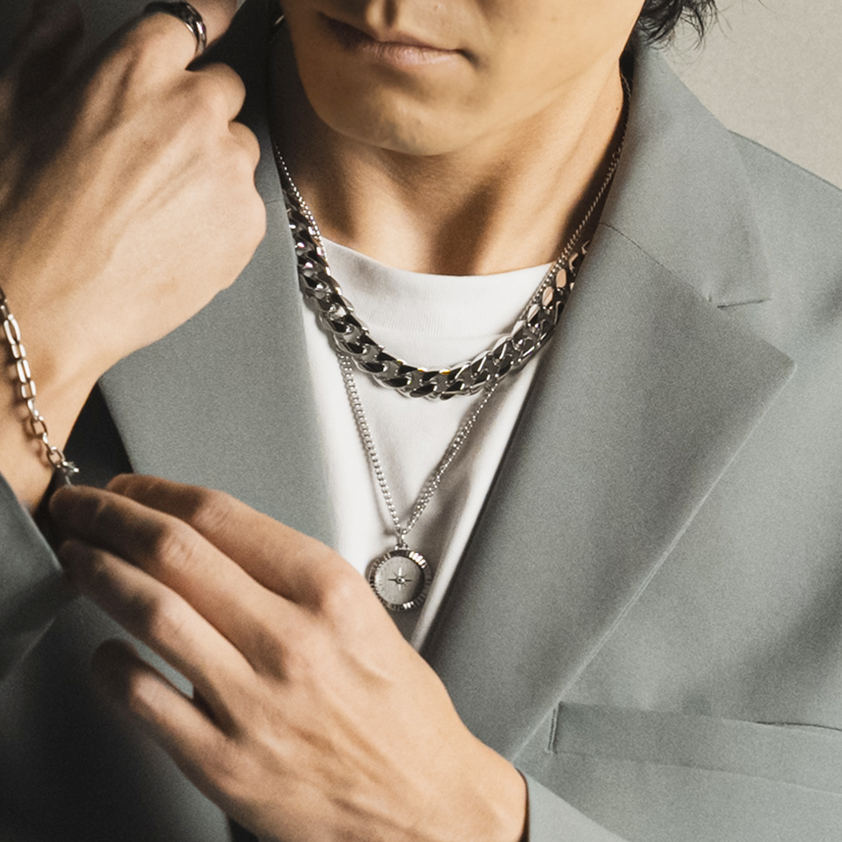 しっかりとしたメンズらしい喜平デザインのチェーンネックレス