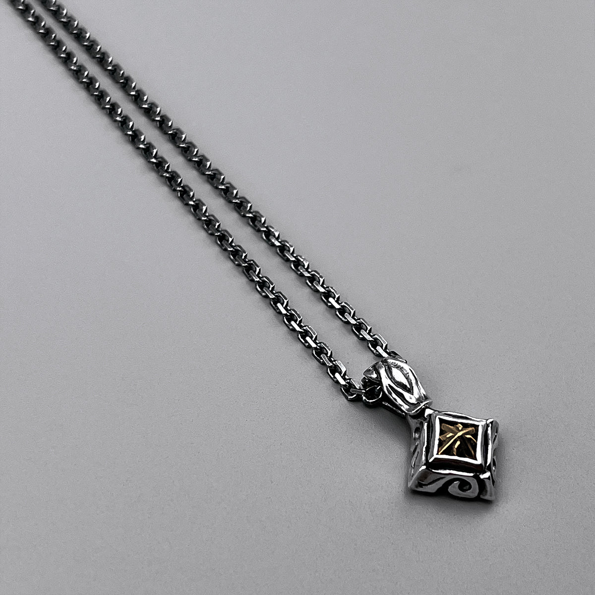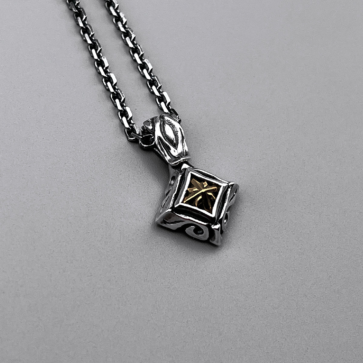 這款吊墜中央鑲嵌一顆 K10 金釘,並飾以流暢的部落風格圖案。